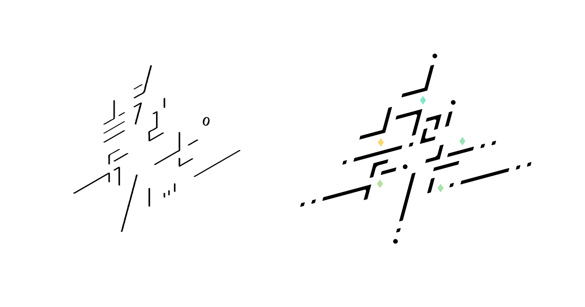 リニューアル前のロゴを元に、カギ括弧、句点、三点リーダー、ダッシュなど、