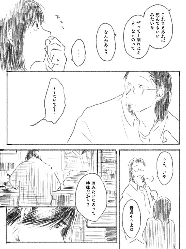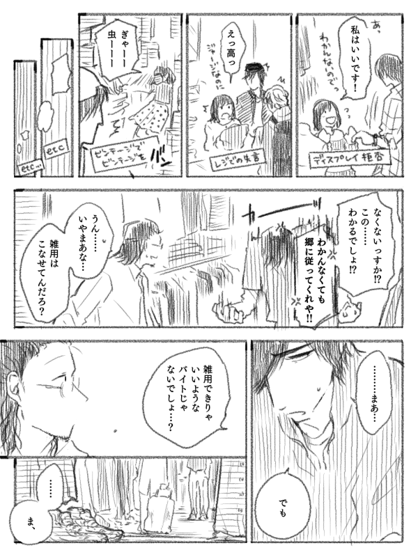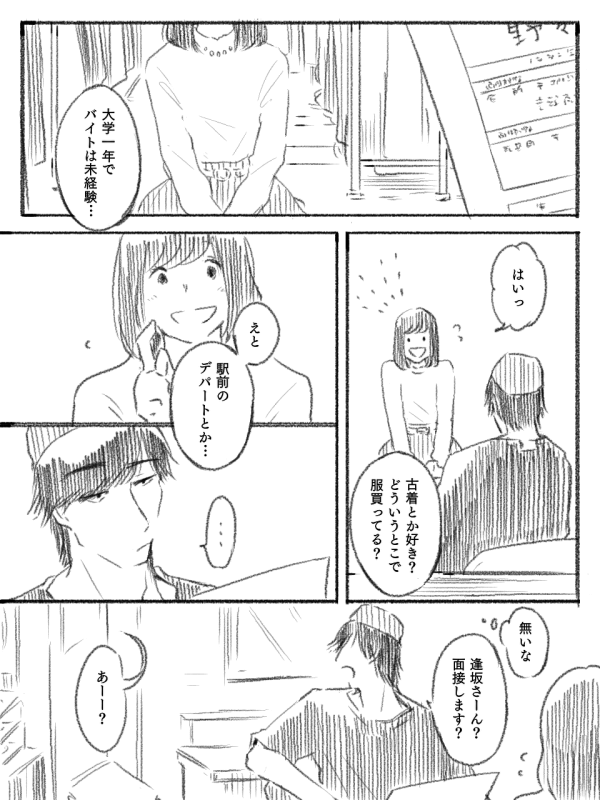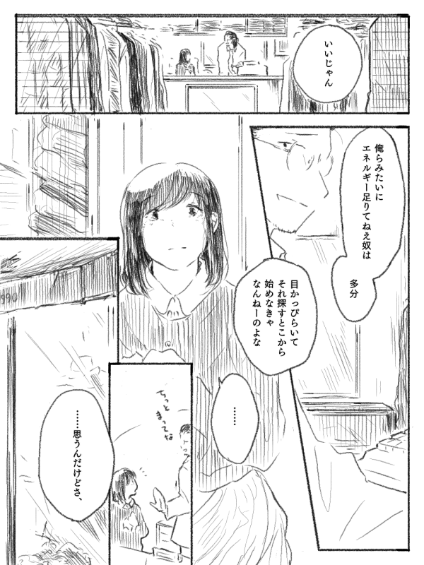 2019 漫画「ある古着屋の話」 MANGA 青ハ番外編。 初代副部長が店長代理をしている古着屋が舞台。 やりたいことがある人と、やりたいことがない人の話です。 →Pixivで読む ↓ここで読む 一覧に戻る